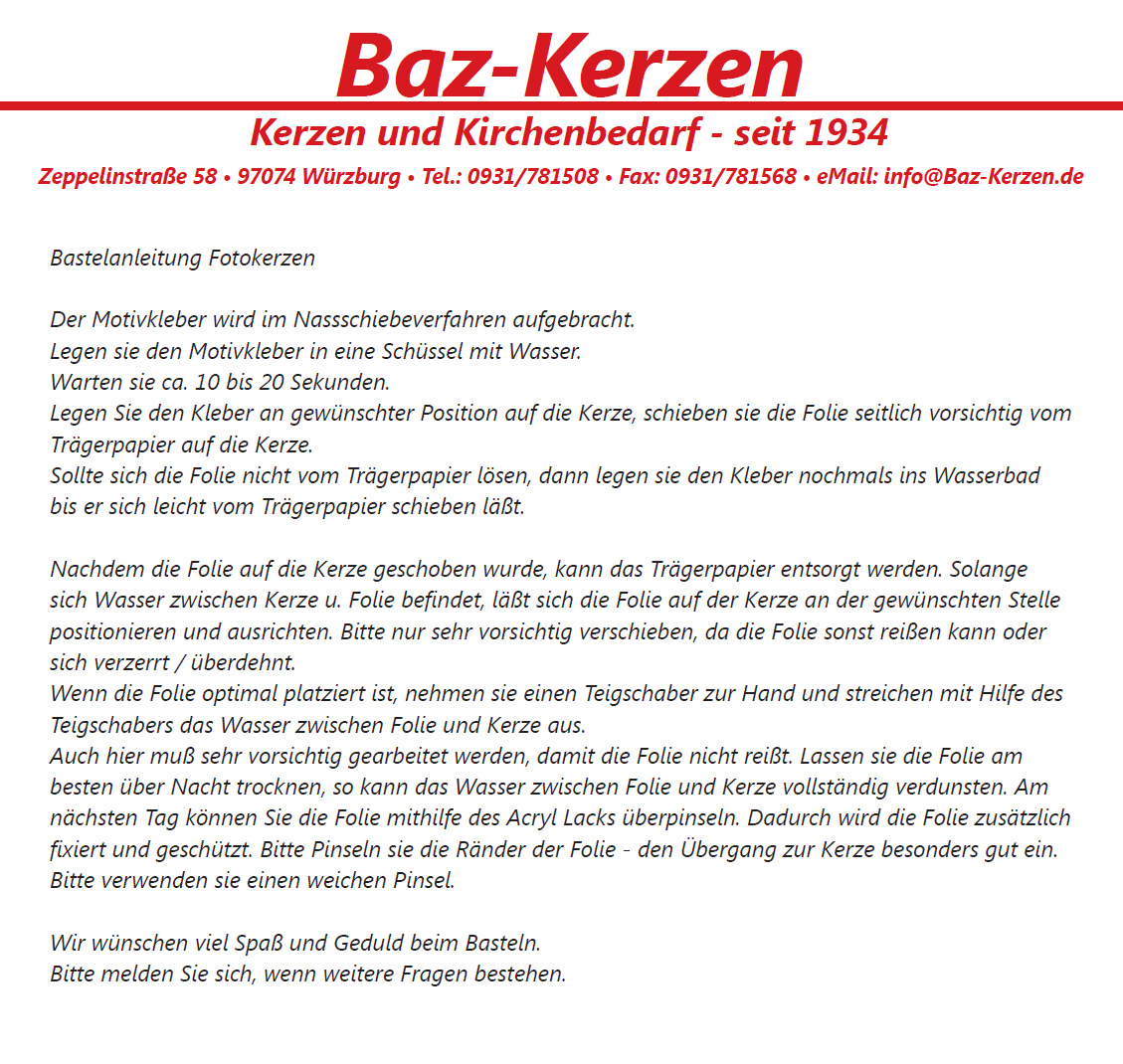 • Schriftzug "Zur Kommunion" als Fotodruck zum selbst aufbringen. Siehe Bastelanleitung Fotodruck/Fotokerzen.