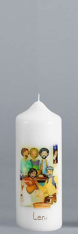 Die Patenkerze zum Kommunionthema "Eine Liebe, die sich gewaschen hat"