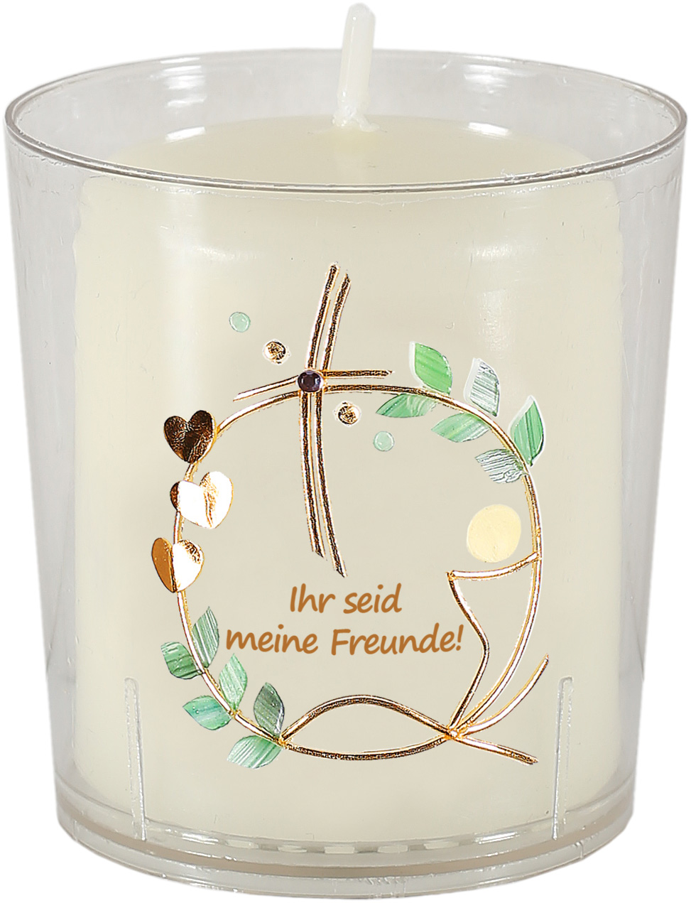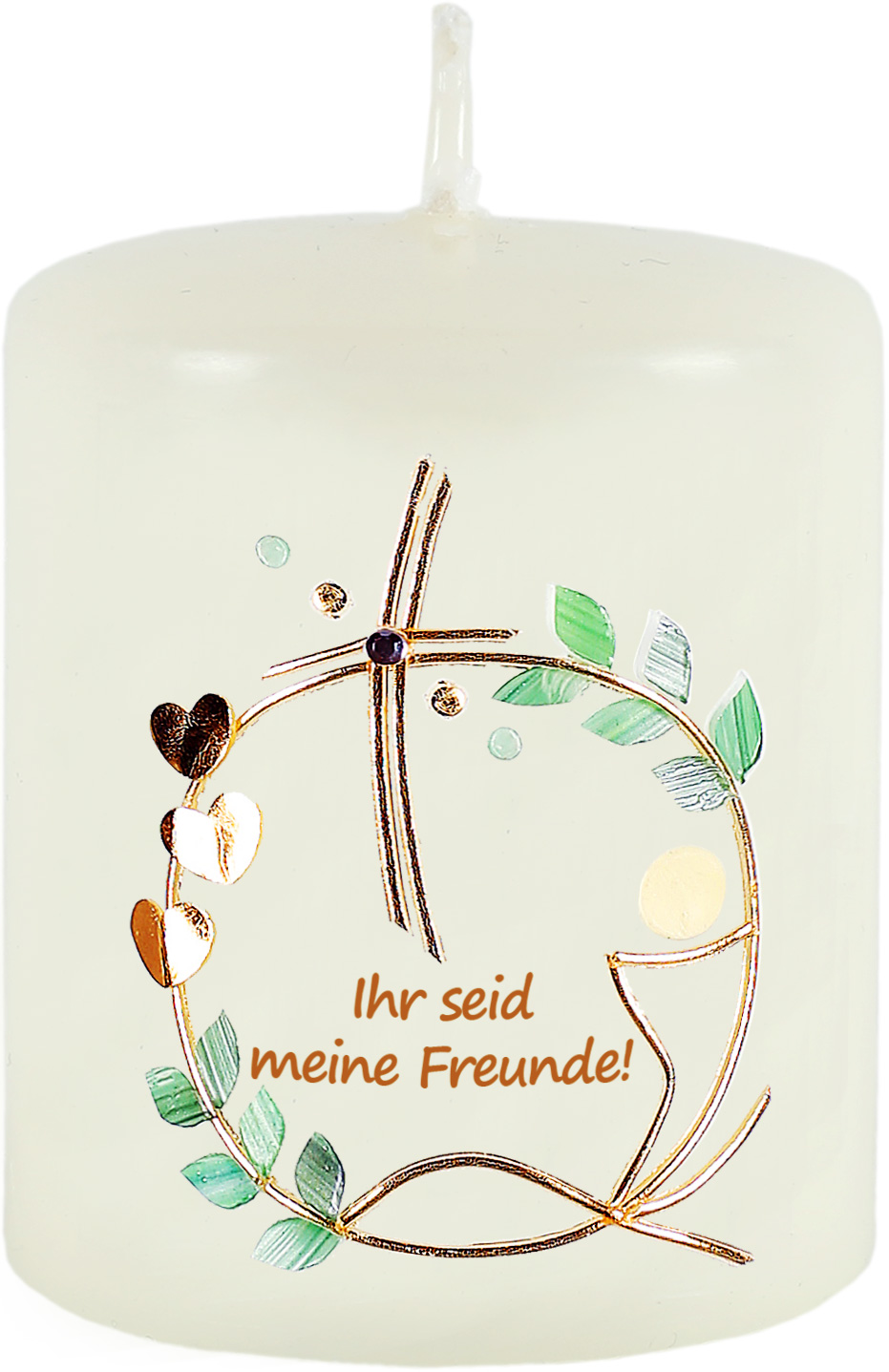 Stumpenkerze + Becher, 60x50, Ihr seid meine Freunde! Eukalyptus