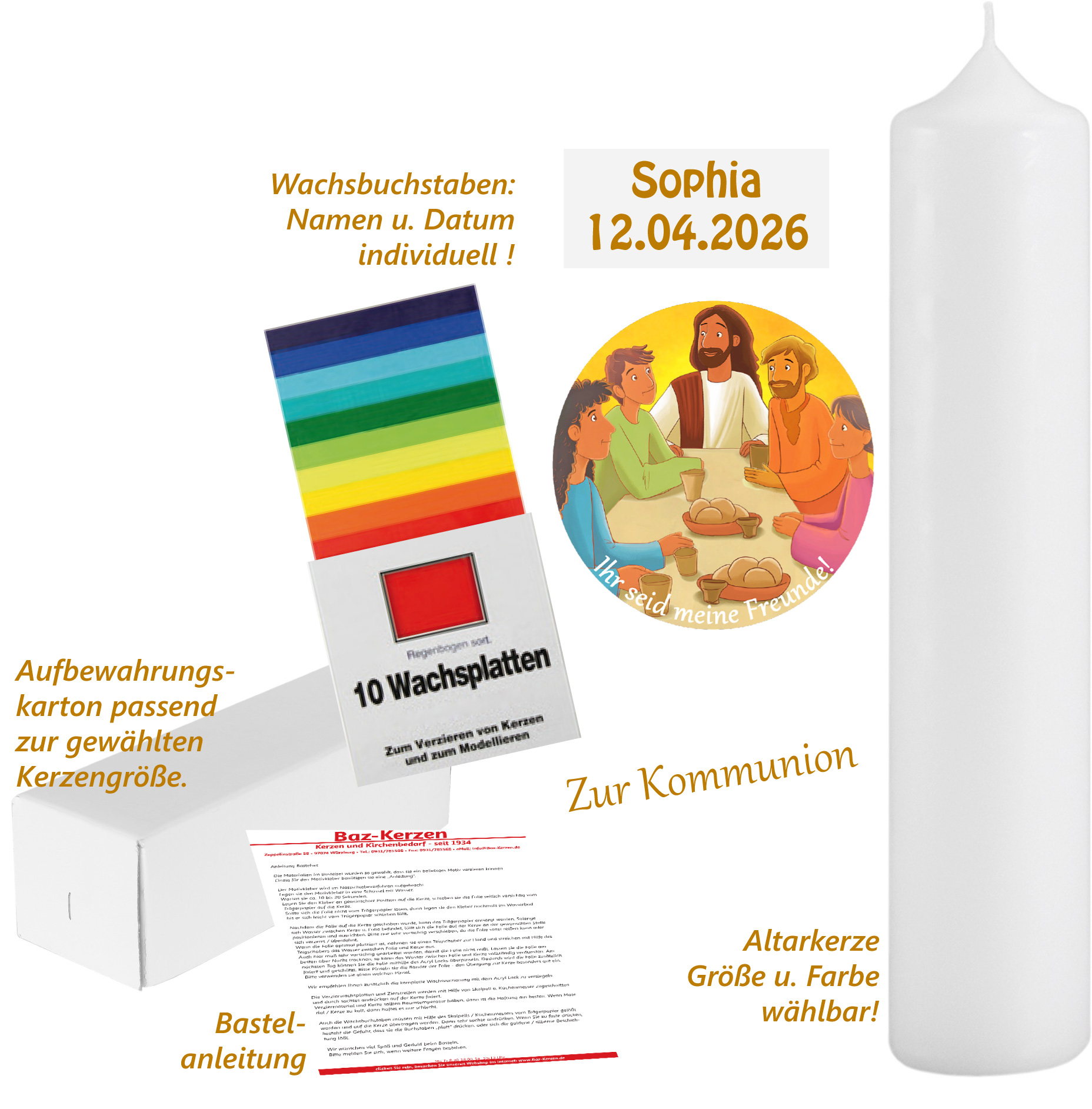 Bastelset, Kommunionkerze, Ihr seid meine Freunde!, Kerzengröße und -Farbe wählbar