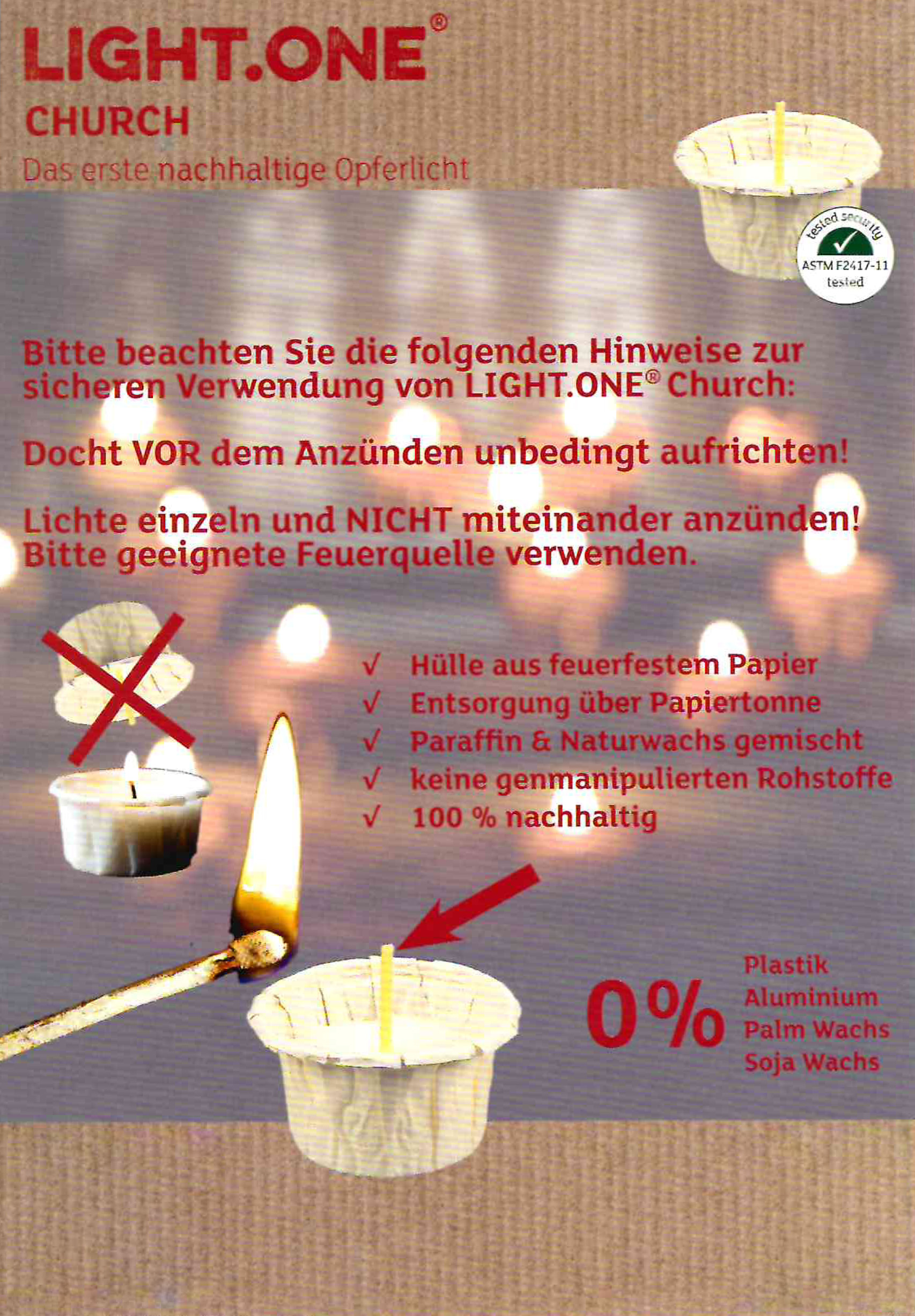 • Opferlichte in umweltfreundlicher nicht brennbarer Papierhülle.