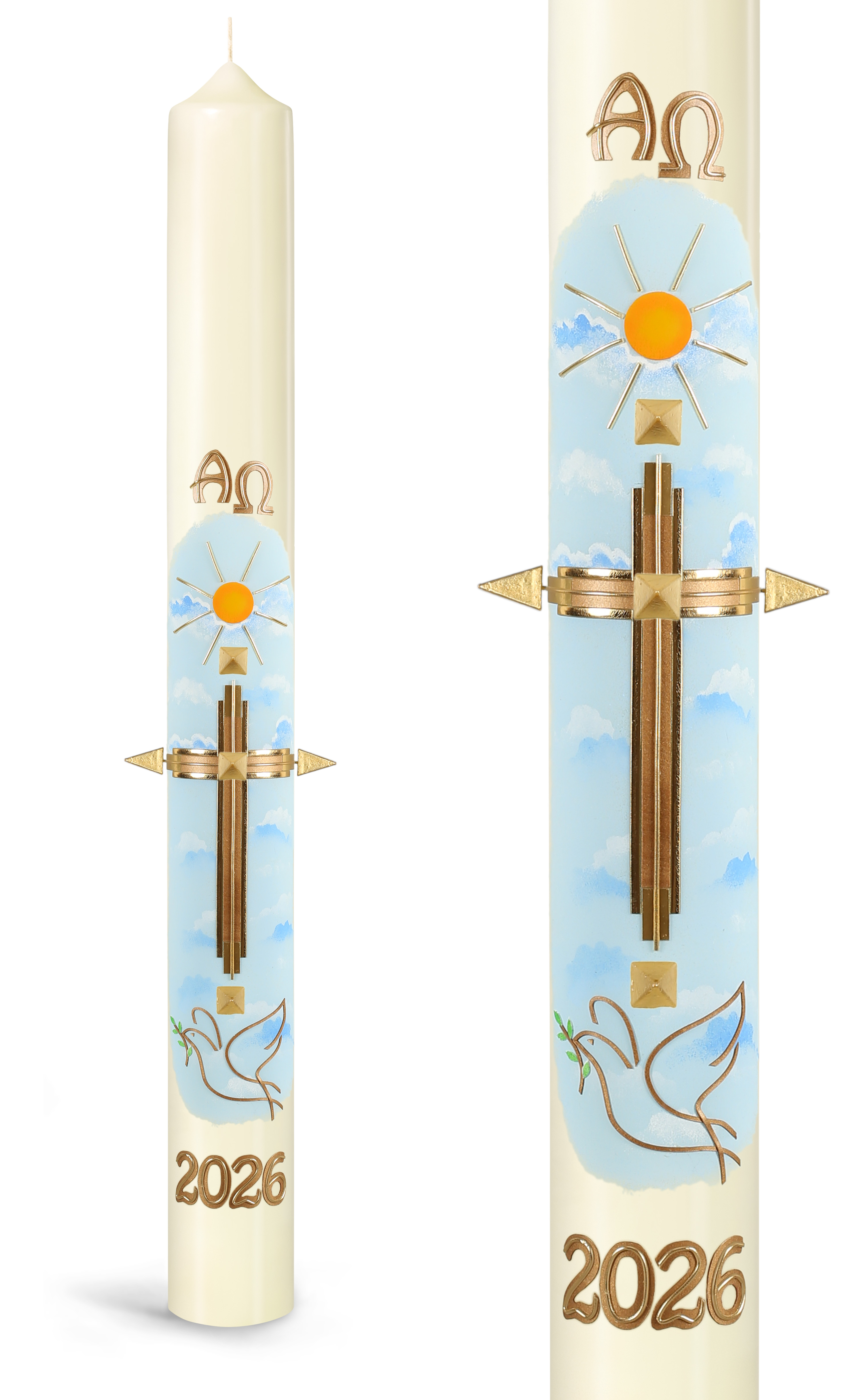 • Das Motiv: Friedenstaube mit Sonne auf Himmelblauem handbemaltem Hintergrund. Alle Elemte bestehen aus feinen Verzierwachs oder Verzierwachsstreifen. Diese Osterkerze kommt Serienmäßig ohne Nägel und ohne Bohrungen für Nägel zu ihnen. Sollten sie Nägel wünschen - dann bitte auch Nägel in den Warenkorb legen, sodann wird die Kerze entsprechend mit Löchern für die Nägel ausgestattet.