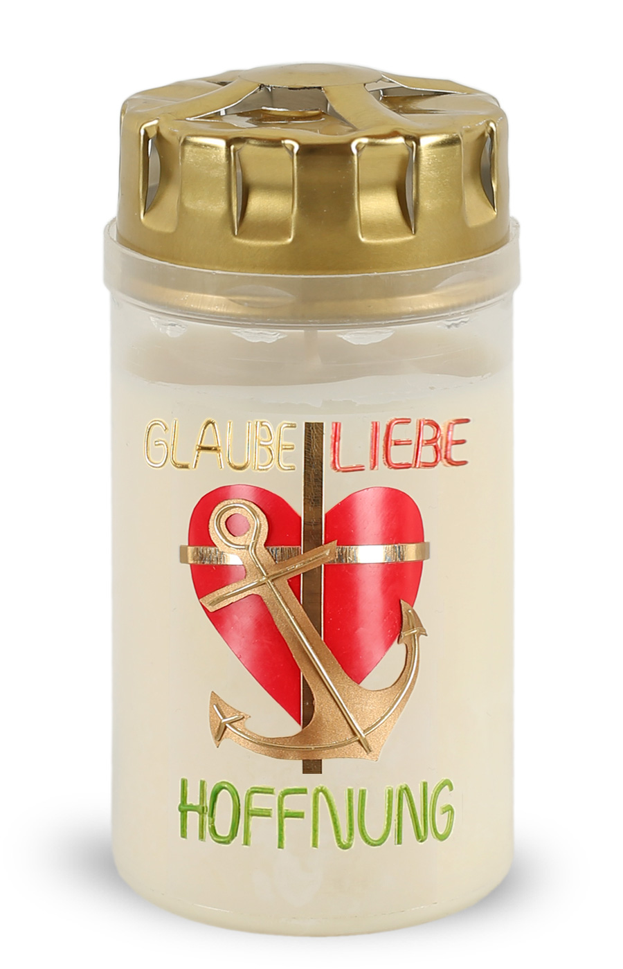 50 Motivbecher, Glaube, Liebe, Hoffnung, mit Stumpenkerze 60x50mm Inhalt 50 Stück (0,82 € * / 1 Stück)